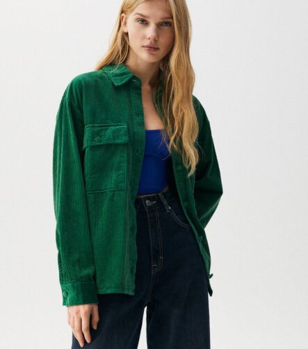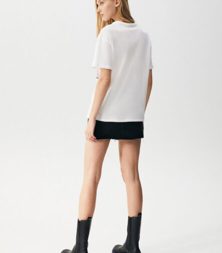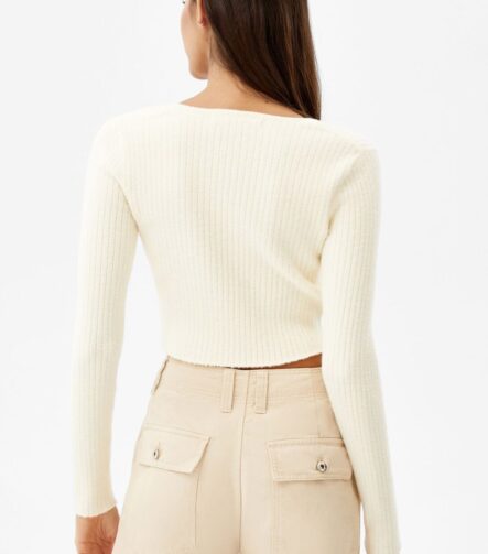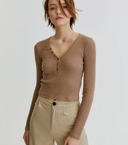 Ribbed Cropped T-Shirt With Buttons